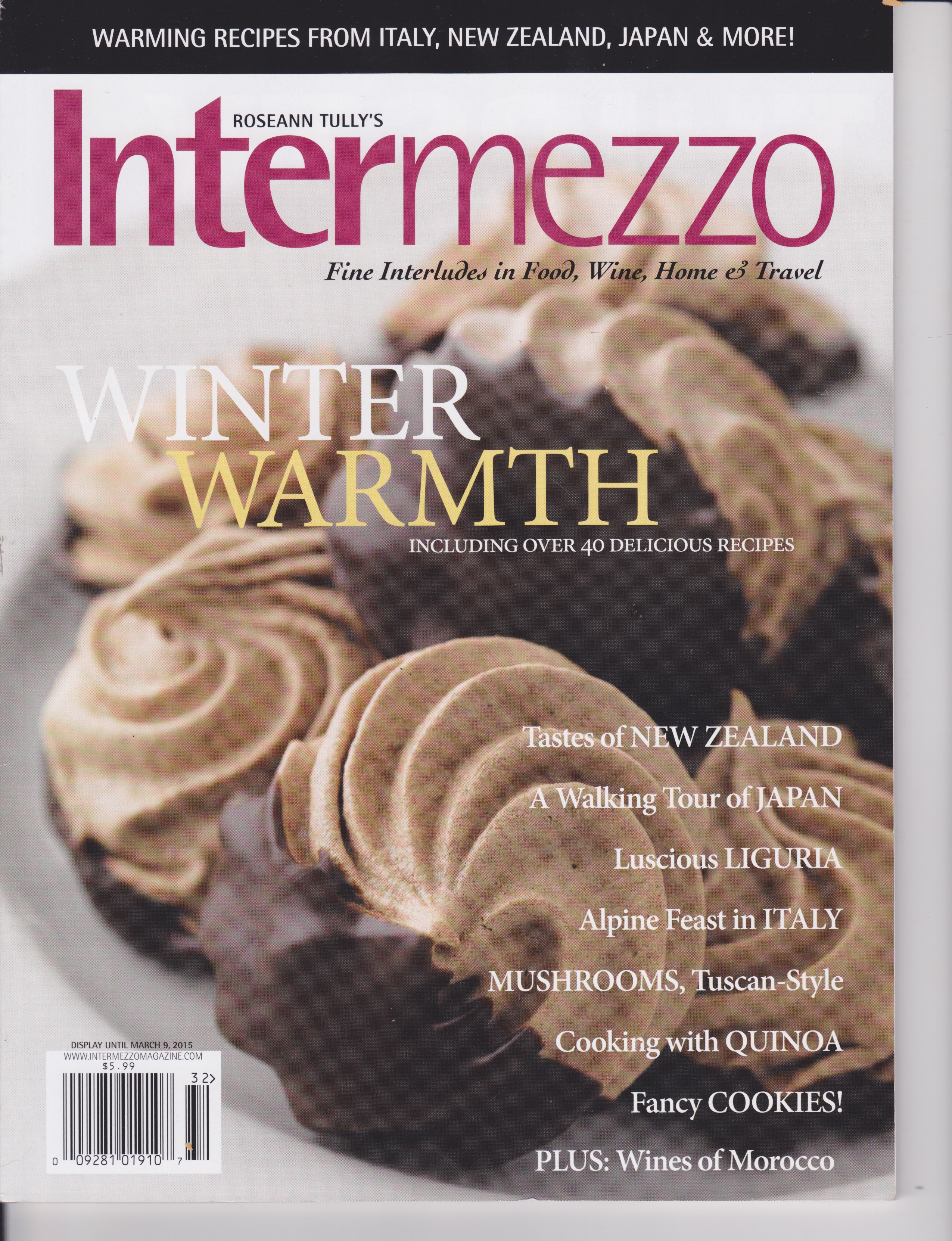 About Intermezzo Magazine, from publisher Roseann Tully: Intermezzo explores a variety of fine life experiences in international cuisine, wine and spirits, kitchen and home decor, wellness, leisure, and travel. Intermezzo is written for readers who enjoy cooking and entertaining at home and traveling in search of wonderful food experiences.